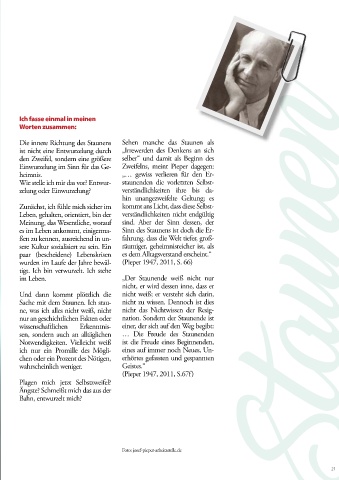 es im Leben ankommt, einigerma- Sinn des Staunens ist doch die Er-